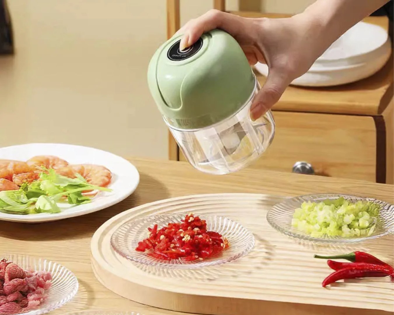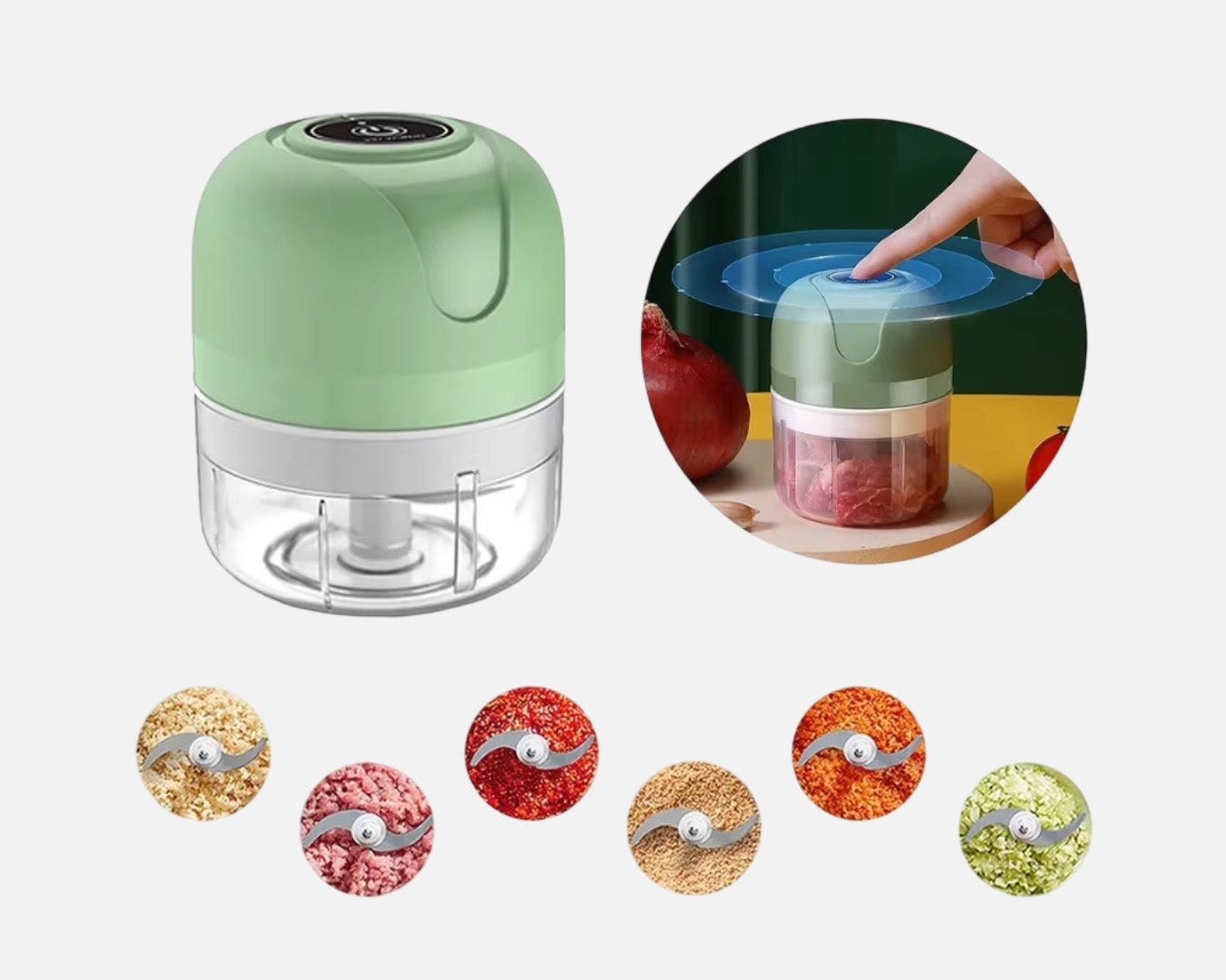 Esqueça a faca e a tábua — com o mini processador elétrico, você prepara temperos, legumes e ingredientes com apenas um toque. As 3 lâminas de aço inox fazem o trabalho pesado por você, em poucos segundos. Mais agilidade, menos bagunça.